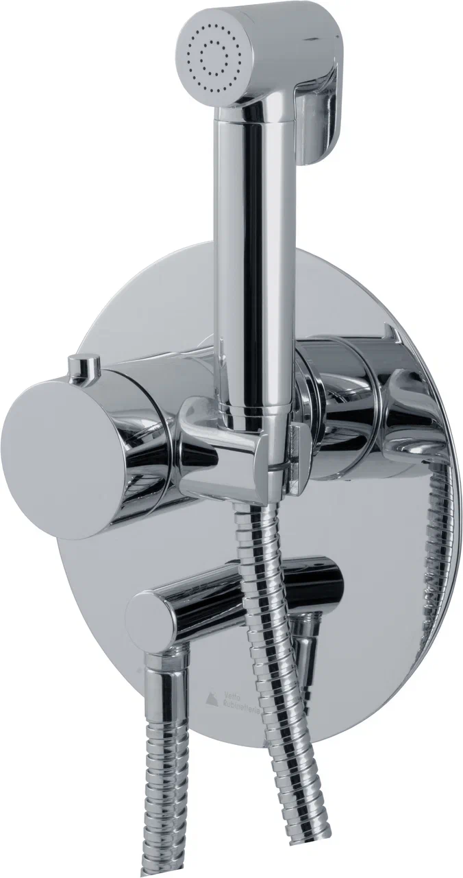 Гигиенический гарнитур (термостатический смеситель с зап. вентилем в ком. со встраиваемой частью, металлич. ручной душ со шлангом, держ.-подсоединение) SHUT16TER